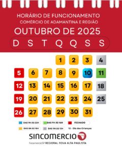 O comércio de Adamantina vai operar em horário especial nos dias que antecedem o Dia das Crianças. A medida, divulgada pelo Sincomercio Nova Alta Paulista (Sindicato Patronal do Comércio Varejista), busca oferecer mais comodidade aos consumidores e aquecer as vendas no período.