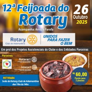 O Rotary Club de Adamantina realiza, no dia 26 de outubro (um domingo), a 12ª edição da tradicional Feijoada Beneficente, uma das ações mais aguardadas do calendário solidário da cidade. O evento tem como objetivo arrecadar recursos para os projetos assistenciais do clube de serviço e também beneficiar instituições parceiras.