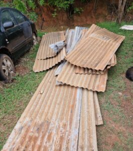 Com base nas informações fornecidas pelo suspeito, os policiais localizaram os objetos furtados tanto no barracão quanto em uma propriedade rural, incluindo diversas telhas, tubos de alumínio e dois suportes de exaustor de energia. Parte dos materiais estava próxima a dois veículos abandonados e outra parte em um pasto.