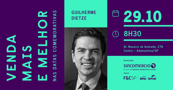 O palestrante Guilherme Dietze, assessor da FecomercioSP, vai mostrar como as datas comemorativas — das mais tradicionais, como Natal, Dia das Mães e Dia dos Namorados, até as menos conhecidas, como o Dia do Gamer e o Dia da Cerveja — podem ser aproveitadas de forma criativa para atrair clientes, fidelizar o público e aumentar o faturamento.