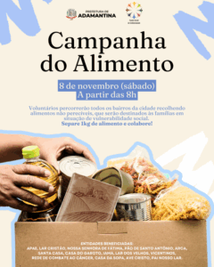 A solidariedade será o foco das ações deste sábado (8), quando acontece mais uma edição da Campanha do Alimento, promovida pela Prefeitura de Adamantina, por meio do Fundo Social de Solidariedade.