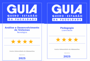 O Centro Universitário de Adamantina celebra um importante reconhecimento de sua qualidade acadêmica no Guia da Faculdade 2025, promovido pelo jornal O Estado de S. Paulo (Estadão) em parceria com a startup educacional Quero Educação. A instituição teve 20 cursos de graduação avaliados positivamente, consolidando sua posição de excelência no ensino superior da região.