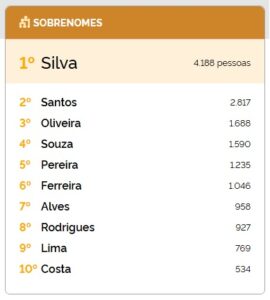 A novidade deste ano é a inclusão dos sobrenomes. De acordo com o IBGE, foram identificados mais de 200 mil sobrenomes em todo o Brasil, sendo Silva o mais comum, presente em 16,76% da população.