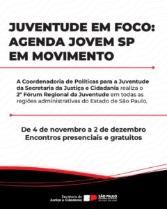 O evento faz parte do 2º Fórum Regional da Juventude: ‘Agenda Jovem SP: Panorama, Perspectivas e Oportunidades’, que percorre todas as regiões administrativas do Estado de São Paulo entre os dias 4 de novembro e 2 de dezembro.