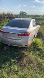 Com base nas informações, equipes da PM montaram um cerco e avistaram o veículo em deslocamento. O condutor tentou escapar por uma estrada vicinal, mas perdeu o controle e foi interceptado. Durante a abordagem, os policiais localizaram uma faca – utilizada no crime – e pertences pessoais do autor.