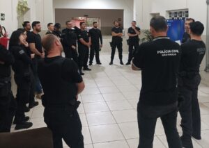 Segundo a corporação, o trabalho investigativo identificou três locais de interesse relacionados ao crime. Com isso, o Poder Judiciário expediu mandados de busca e apreensão, cumpridos por uma equipe formada por 20 policiais civis, distribuídos em cinco viaturas.