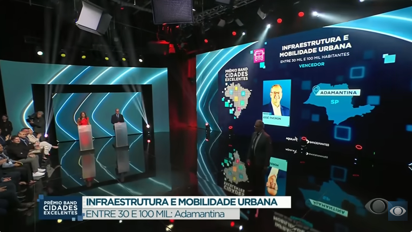 Adamantina está entre os destaques nacionais da administração pública brasileira. O município é finalista da etapa nacional do Prêmio Band Cidades Excelentes, cuja cerimônia de premiação acontece nesta segunda-feira (15), em Brasília (DF). O evento será apresentado pelos jornalistas Adriana Araújo e Eduardo Oinegue, com transmissão ao vivo, a partir das 20h, pelo canal oficial da Band no YouTube, e exibição na televisão no domingo (21), às 23h.