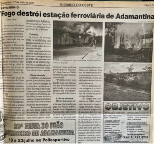 Entre os patrimônios mais emblemáticos de Adamantina-SP, está a estação ferroviária, que foi destruída pelas chamas.