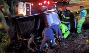 Picape atinge placa e capota na SP-294 em Dracena; duas pessoas ficam feridas