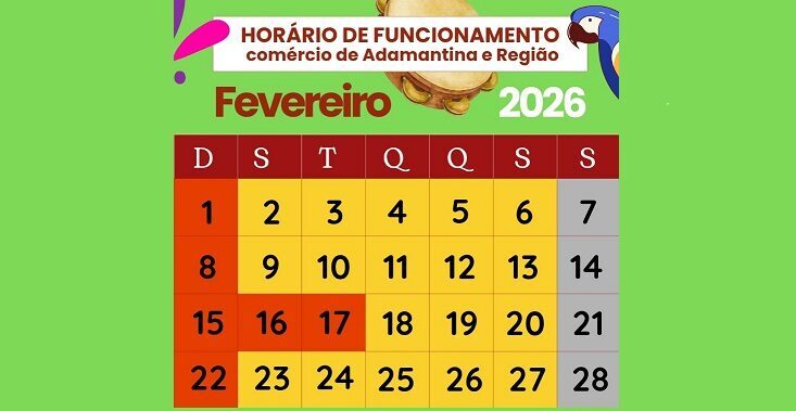 O comércio varejista de Adamantina terá o funcionamento alterado durante o período de Carnaval de 2026. Segundo o cronograma divulgado pelo Sincomércio (Sindicato do Comércio Varejista) da Nova Alta Paulista, as lojas permanecerão fechadas na segunda-feira (16) e na terça-feira (17).