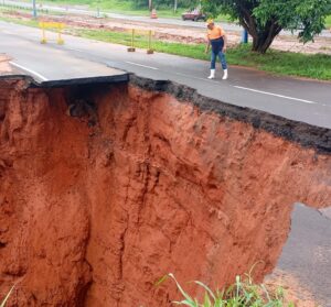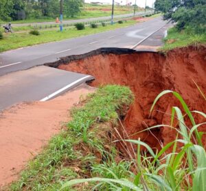 Imagens feitas no local mostram que parte da pista cedeu com o desmoronamento de uma encosta, comprometendo a estrutura da estrada. Segundo a Defesa Civil municipal, a área já estava parcialmente interditada de forma preventiva, o que evitou a ocorrência de acidentes graves no momento do colapso.