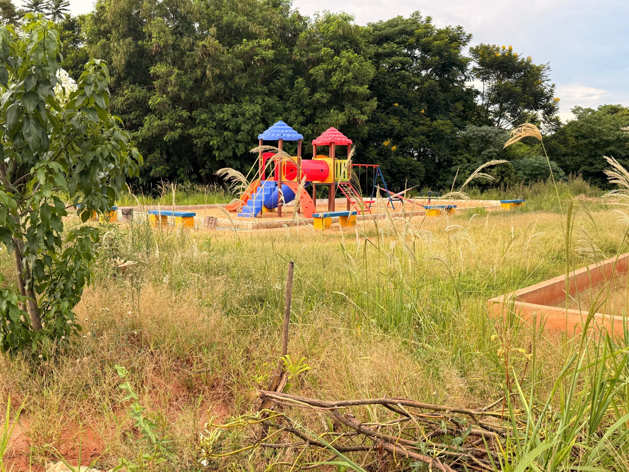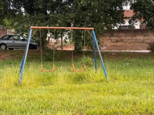 Espaço infantil do Residencial San Miguel II apresenta mato alto | Foto: Gustavo Amaral/IMPACTO