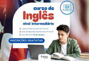 A Faculdade de Tecnologia (Fatec) de Adamantina está com inscrições gratuitas abertas para o Curso Intensivo de Inglês – Nível Intermediário, uma ótima oportunidade para quem quer dar um passo a mais no aprendizado do idioma e ganhar confiança para se comunicar em inglês. As vagas são limitadas e o curso é voltado para jovens e adultos a partir de 15 anos.