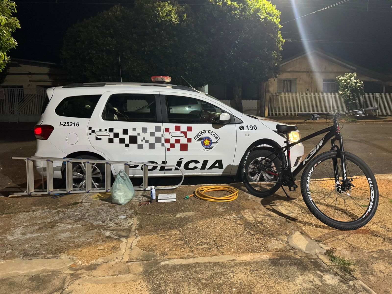 Ao ser abordado, o suspeito confessou os crimes. Na garagem do imóvel, a equipe recuperou diversos itens subtraídos, incluindo uma escada de alumínio, uma sacola com materiais odontológicos, um painel de LED e ferramentas. Outros objetos, como uma bicicleta e uma mangueira de jardim, foram encontrados posteriormente em uma loja de conveniência.