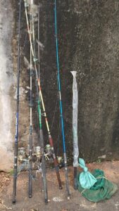 Durante a vistoria, os policiais também encontraram um saco contendo sangue e escamas de peixes, além de uma faca, o que indicava atividade recente de pesca. No entanto, nenhum pescado foi localizado com o autuado.