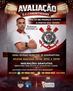 O sonho de seguir carreira no futebol profissional pode estar prestes a se tornar realidade para as crianças e adolescentes de Adamantina e região. No dia 21 de março (sábado), a partir das 15h, o Estádio Municipal Antônio Goulart Marmo será palco de uma avaliação técnica oficial do Sport Club Corinthians Paulista.