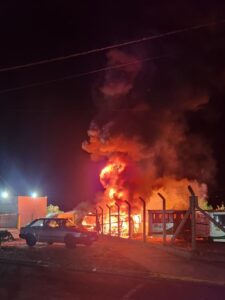 As chamas começaram por volta das 3h. O Corpo de Bombeiros foi acionado e conseguiu controlar o incêndio, realizando o rescaldo em seguida para evitar o surgimento de novos focos. Durante a emergência, funcionários da própria empresa agiram rápido para retirar e afastar outros veículos do local, impedindo que o fogo se alastrasse por toda a garagem.