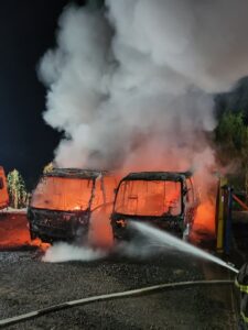 Um incêndio na madrugada de hoje (5) destruiu completamente dois micro-ônibus no pátio de uma empresa de transporte de passageiros no Parque Itamarati, em Adamantina. Apesar da gravidade e das perdas materiais, ninguém ficou ferido. A suspeita inicial é de que uma pane elétrica em um dos veículos tenha iniciado o fogo.
