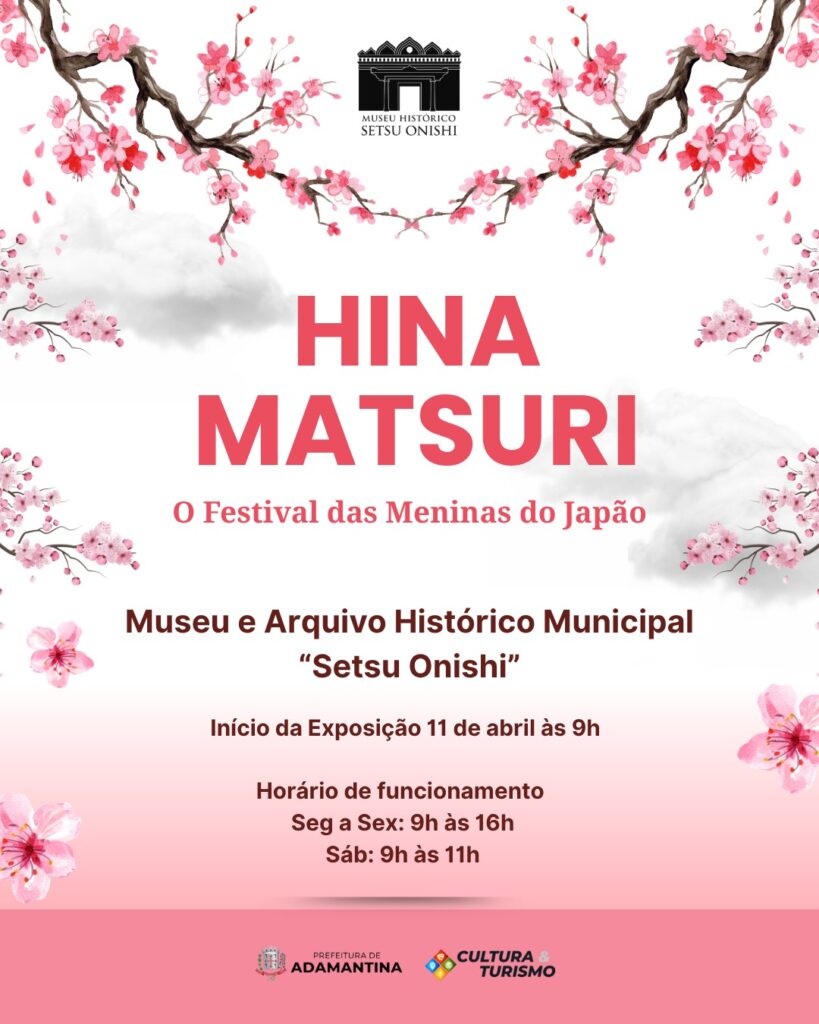 O Museu e Arquivo Histórico de Adamantina “Setsu Onishi” abre neste sábado (11), a partir das 9h, a exposição especial “Hina Matsuri – O Festival das Meninas do Japão”. A iniciativa busca valorizar e difundir aspectos da cultura japonesa presentes na formação do município.