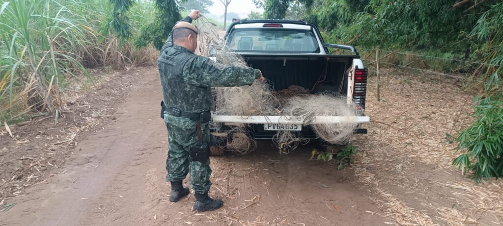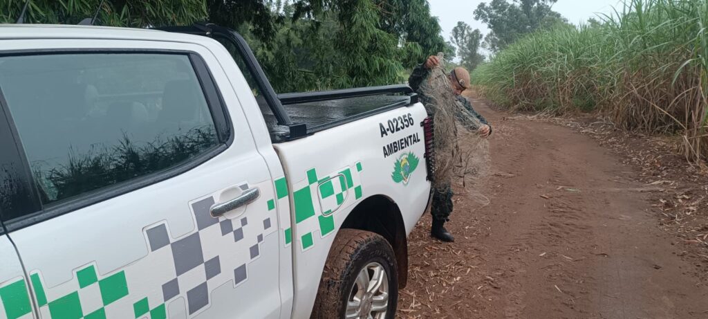 A ação ocorreu nas proximidades da cachoeira do Salto Botelho, área onde a prática de pesca é proibida. Durante o policiamento na margem esquerda do rio, os agentes flagraram dois indivíduos utilizando rede de arrasto, método ilegal naquele local.